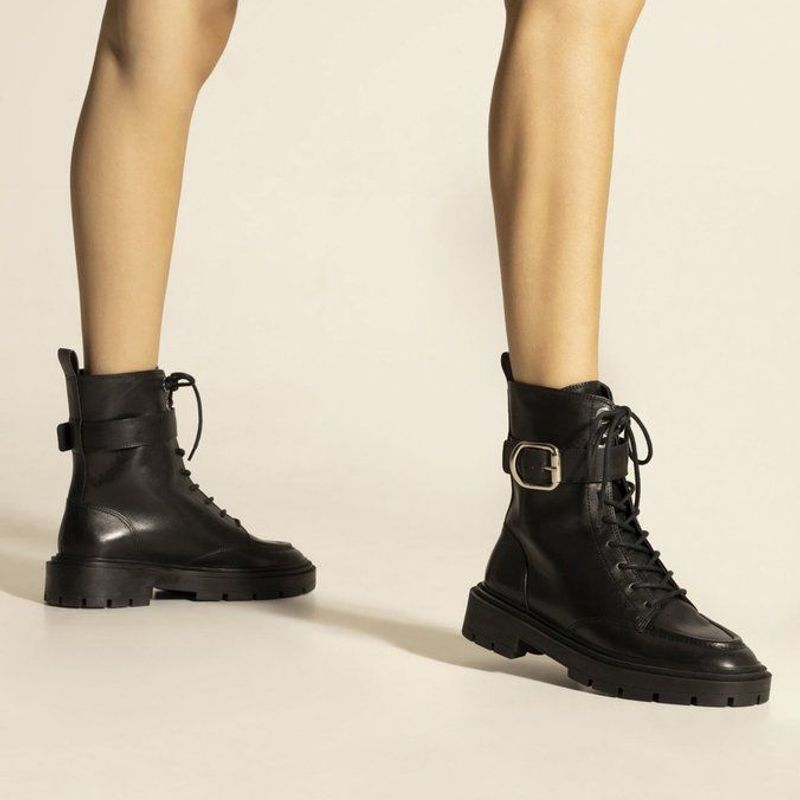 Coturno 35 Preto Couro Cano Curto Fivela 35 Bota Feminina Arezzo