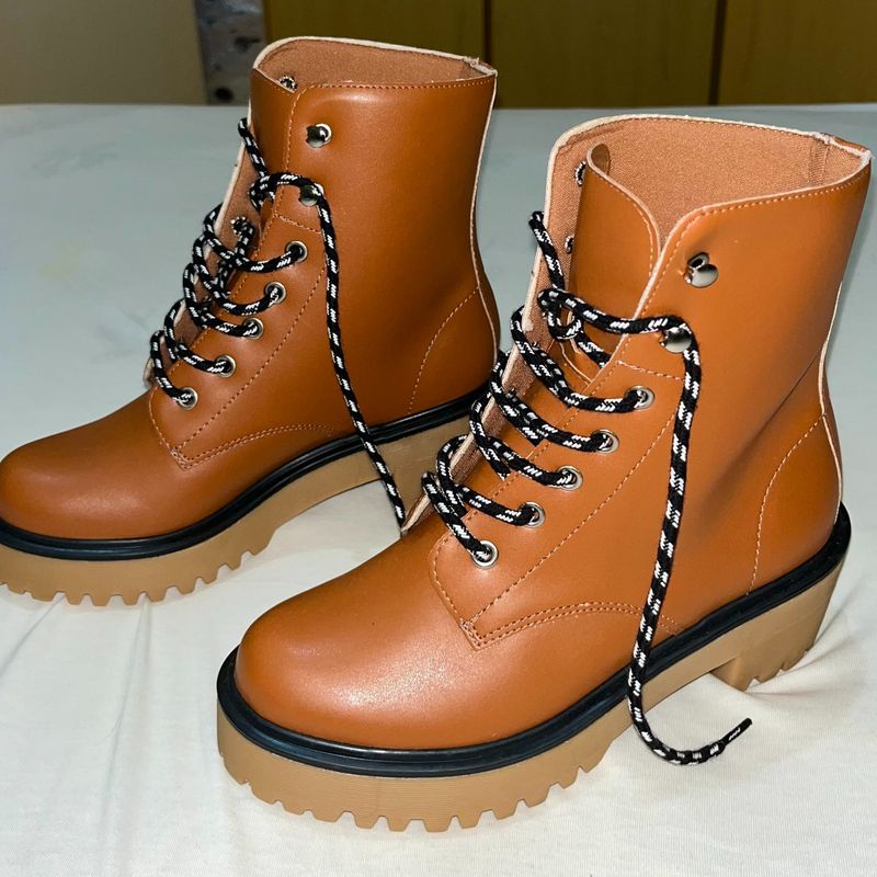 Bota Coturno Feminina Tratorada Bota Feminina Satinato Nunca