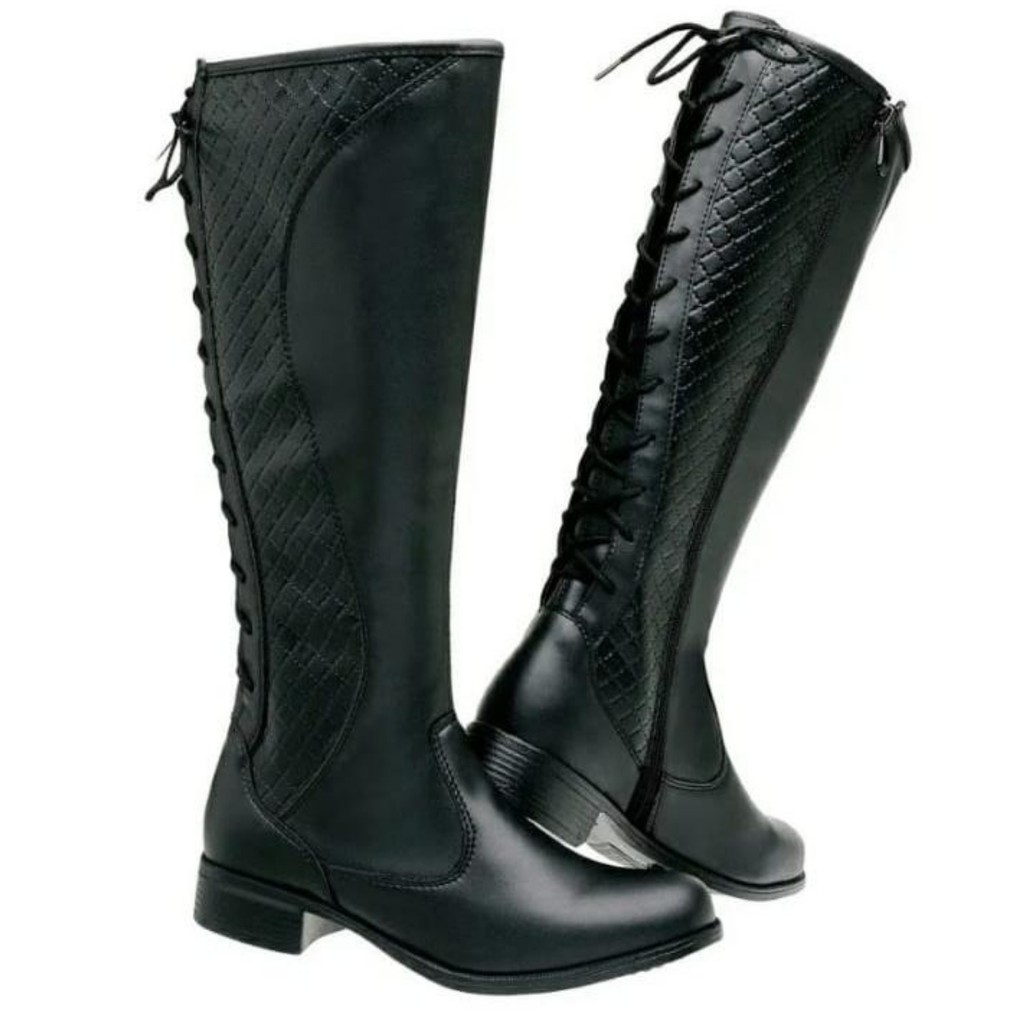 Bota montaria com clearance cadarço, Bota Montaria Feminina Conforto Macia Over Casual Preto 11503 BR2 clearance