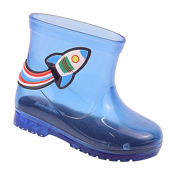 Galocha Baby Infantil Menino Foguete Botinha Cristal Azul Bota de chuva transparente Imperme vel Envio R pido