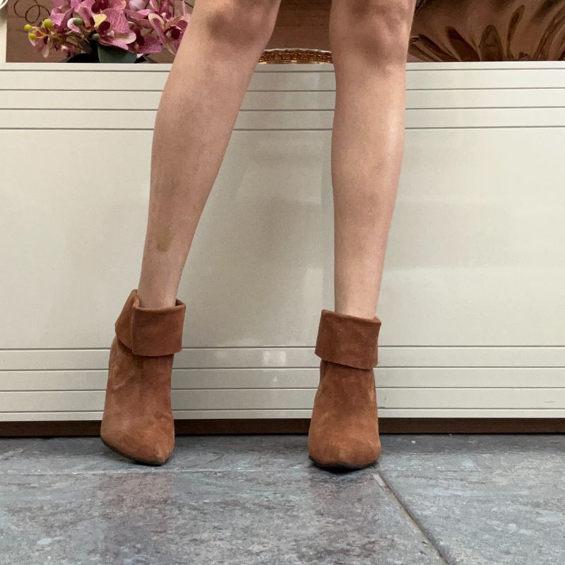 Bota Cano Curto Veludo Marrom Salto Alto Schutz Bota Feminina Schutz Usado 81512017 enjoei