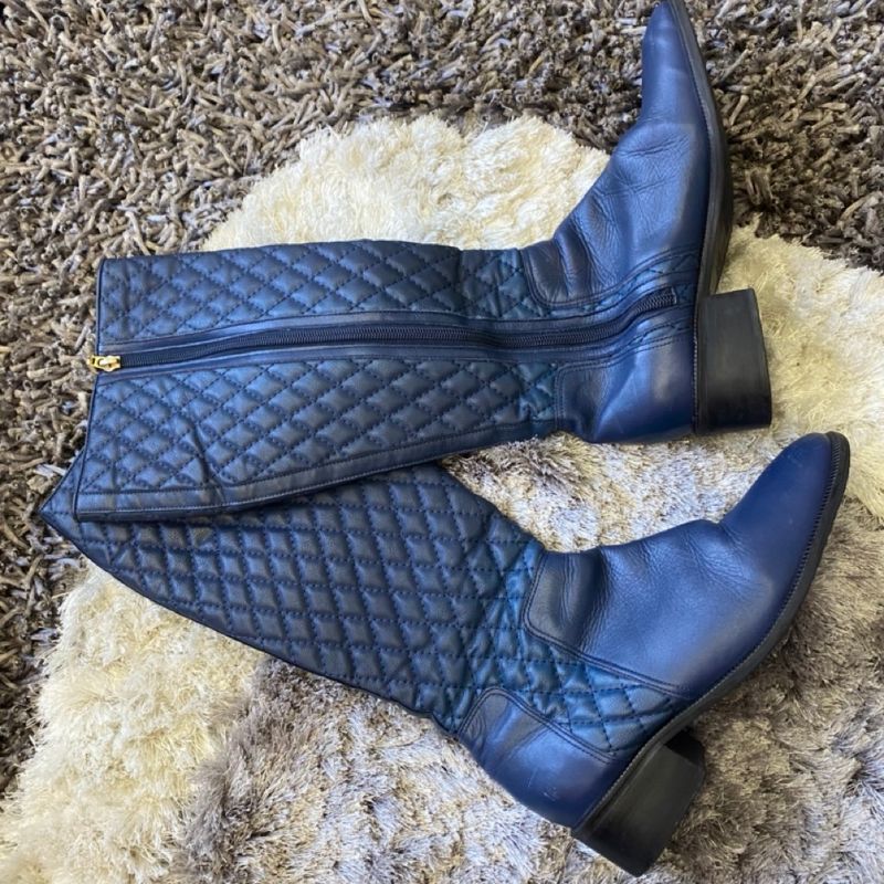 Bota Couro Azul Marinho Datelli Cano Alto Montaria Matelasse Bota Feminina Datelli Usado 96442835 enjoei