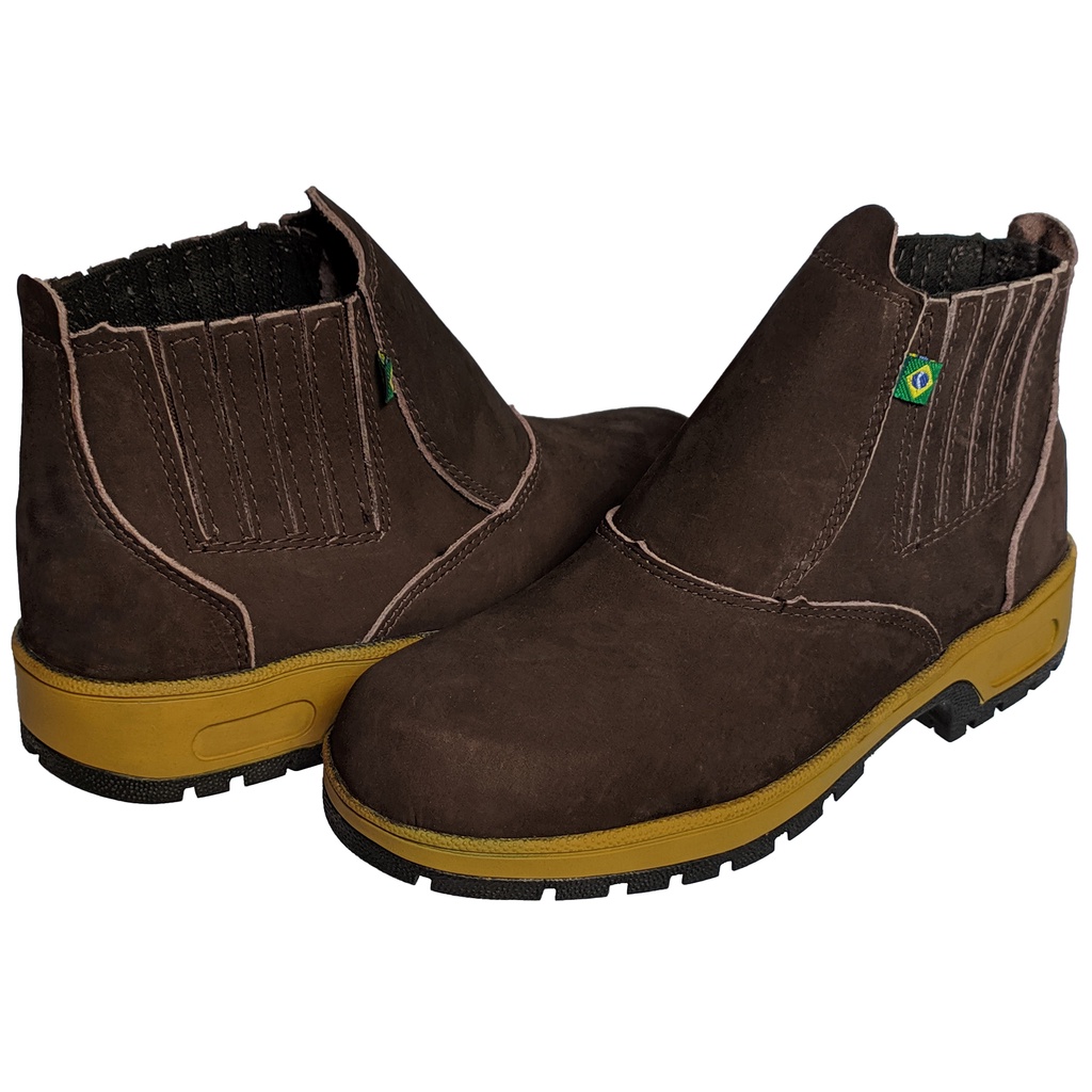 Bota Trabalho Seguran a Botina Em Couro Resistente El stico Sem