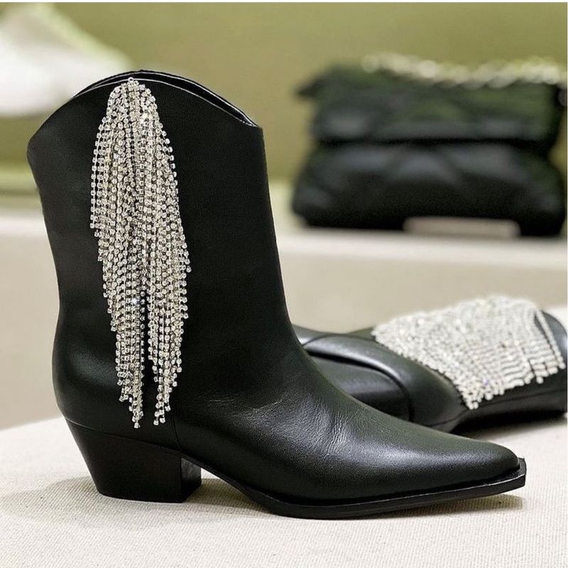 Bota Schutz Western Franja de Strass Couro Leg timo Preta Texana Desejo Esgotada No Site Bota Feminina Schutz Nunca Usado 89139261 enjoei
