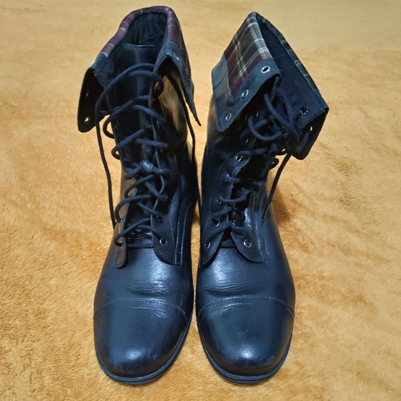 Bota clearance xadrez arezzo, Bota Preta Couro Cano Curto Salto Bloco Arezzo Arezzo Normandia SP clearance