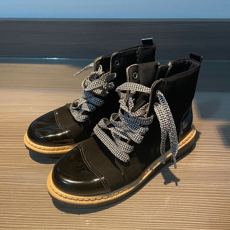 Bota Coturno Infantil com Cadar o e Ilh s Tam 28 ao 34 Preto