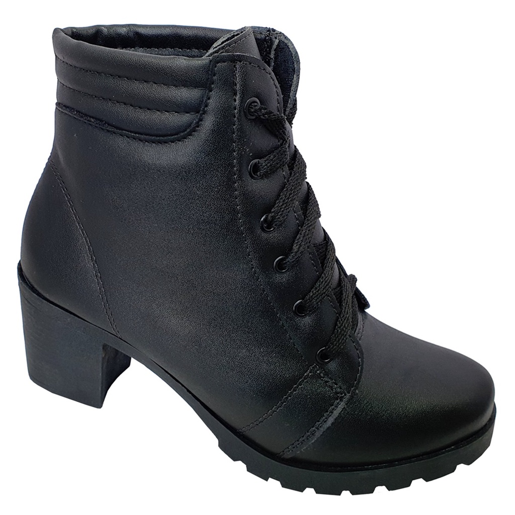 Bota Feminina Coturno Cano Baixo Salto Alto Grosso Tratorado Moda