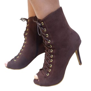 Bota Feminina Amani Peep Toe Cano Curto Salto Alto Fino Z per