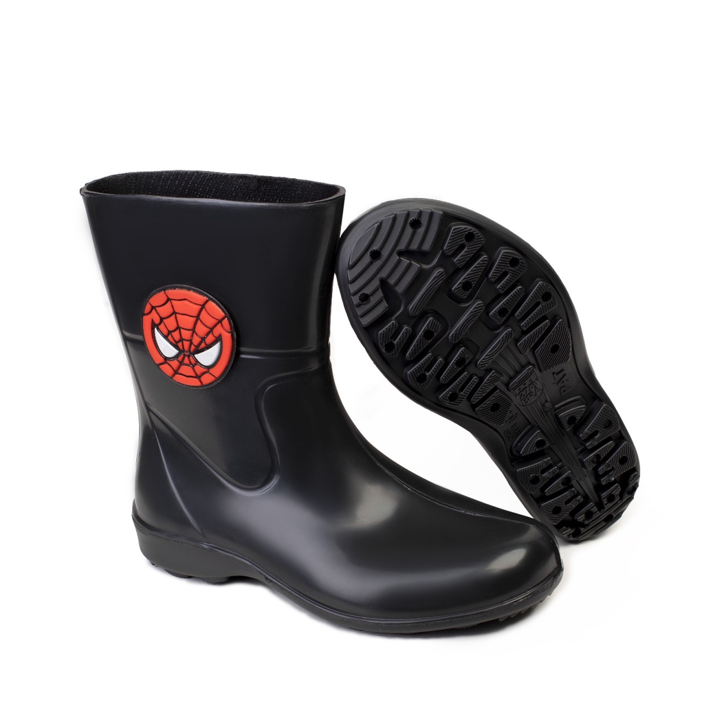 Bota de borracha clearance infantil homem aranha, Botinha cano alto homem aranha em couro preto 2 velcros clearance