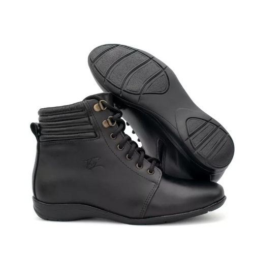 Bota Feminina Cano Baixo Salto Baixo Em Couro Griffe 9063 Preto