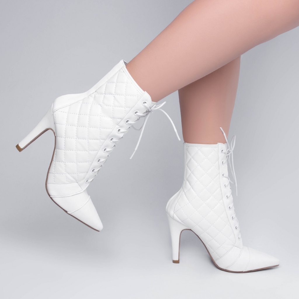 Bota de verniz clearance branca, Bota Feminina Cano Curto Salto Alto Branca ou Preta Verniz Salto clearance