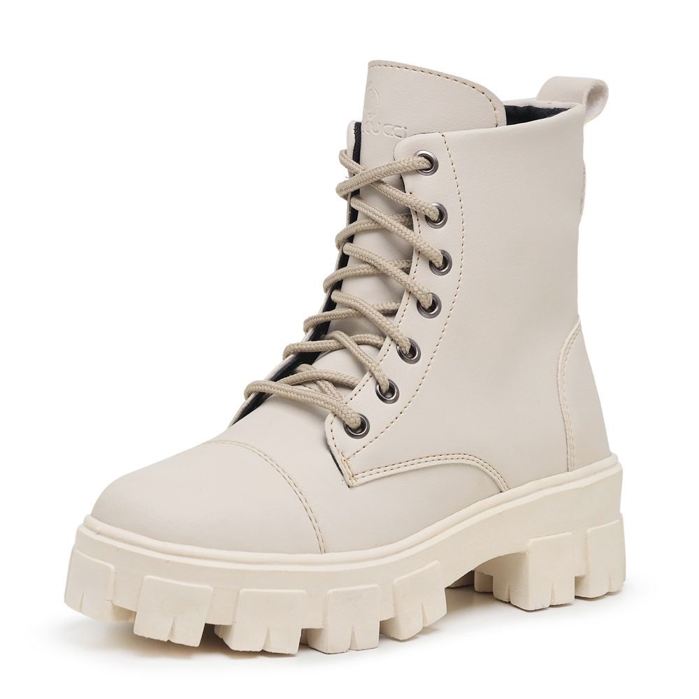 Bota Feminina Coturno Nude Falcucci Blogueira Tratorada Militar Cano Curto