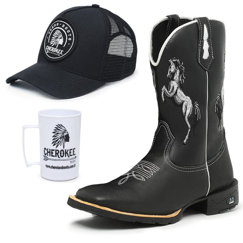 Bota Feminina Country Texana 2176 Preta Cavalo Couro Leg timo