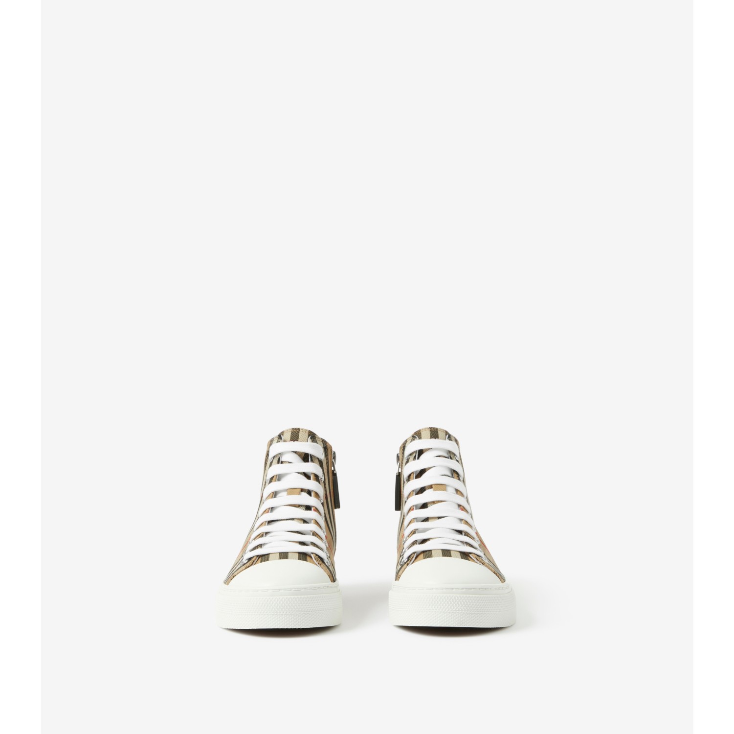 De clearance cano alto, T nis de cano alto de algod o em Check Bege cl ssico Crian as clearance