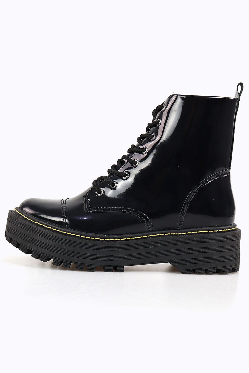 Coturno Chiquiteira Cano Curto Sola Alta Verniz Preto Ac Bota