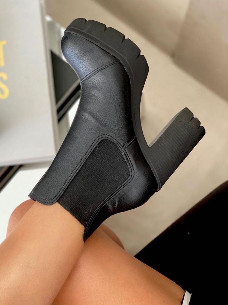 Bota Fem Salto Quadrado Preta Compre Online Pir mide Center