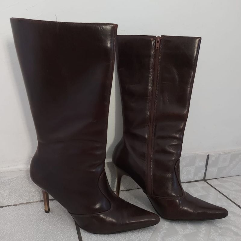 Bota Marrom Cano Alto Bico Fino Bota Feminina Rede Galinha Morta Usado 61976682 enjoei