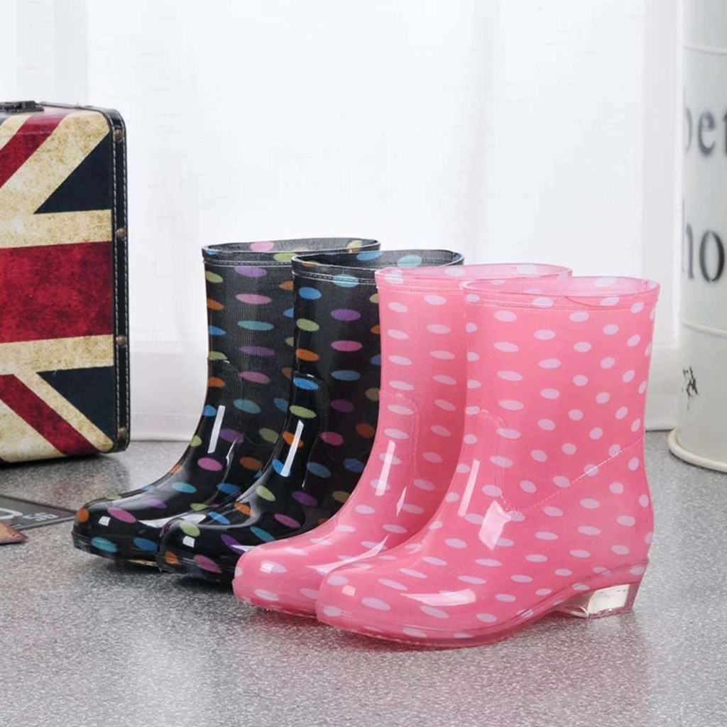 Bota de chuva feminina de borracha da Rongee cano m dio com refor o ajust vel bolsa Oxford