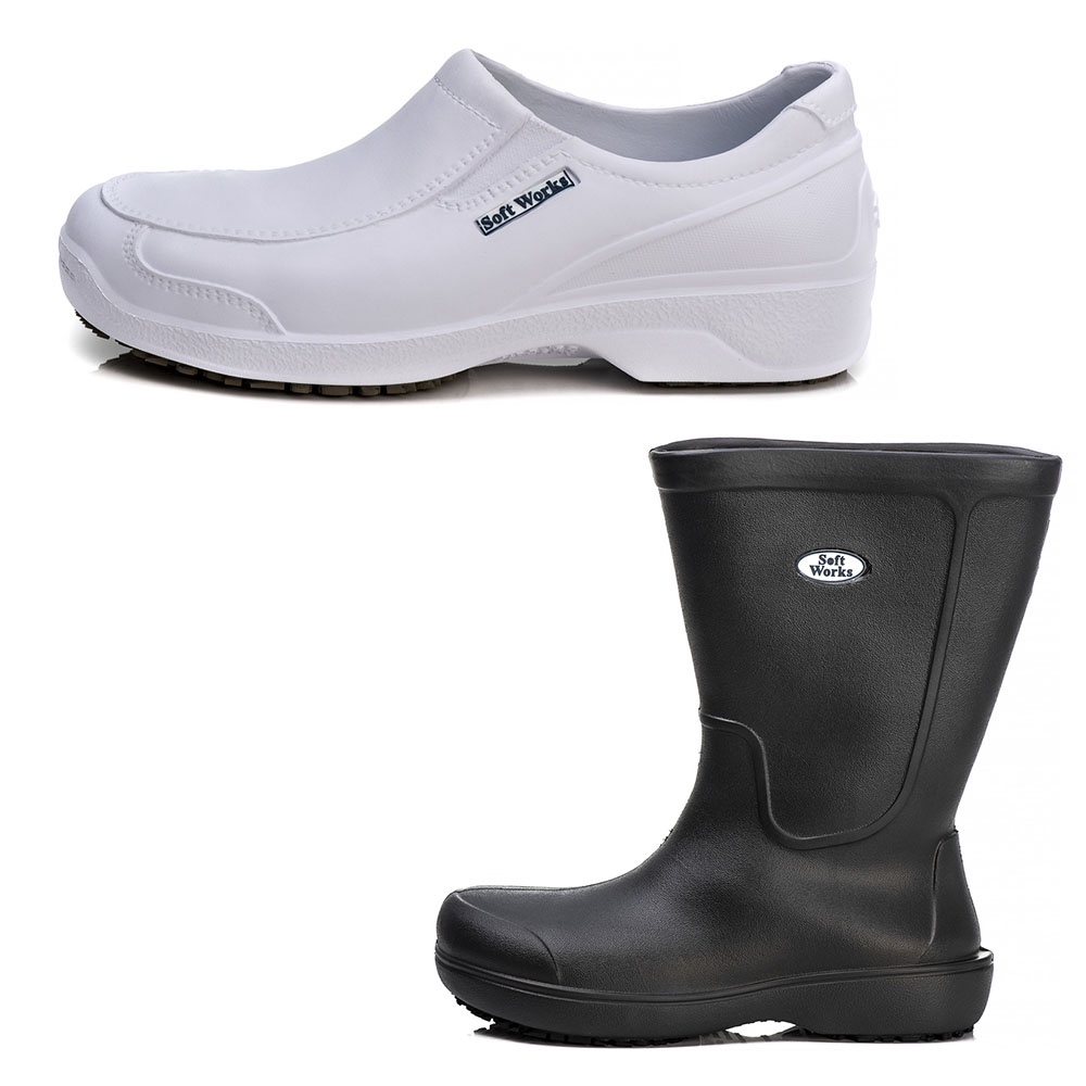 Kit Bota Feminina Profissional Soft Works Antiderrapante Com CA Hospital Restaurante Preto e Branco