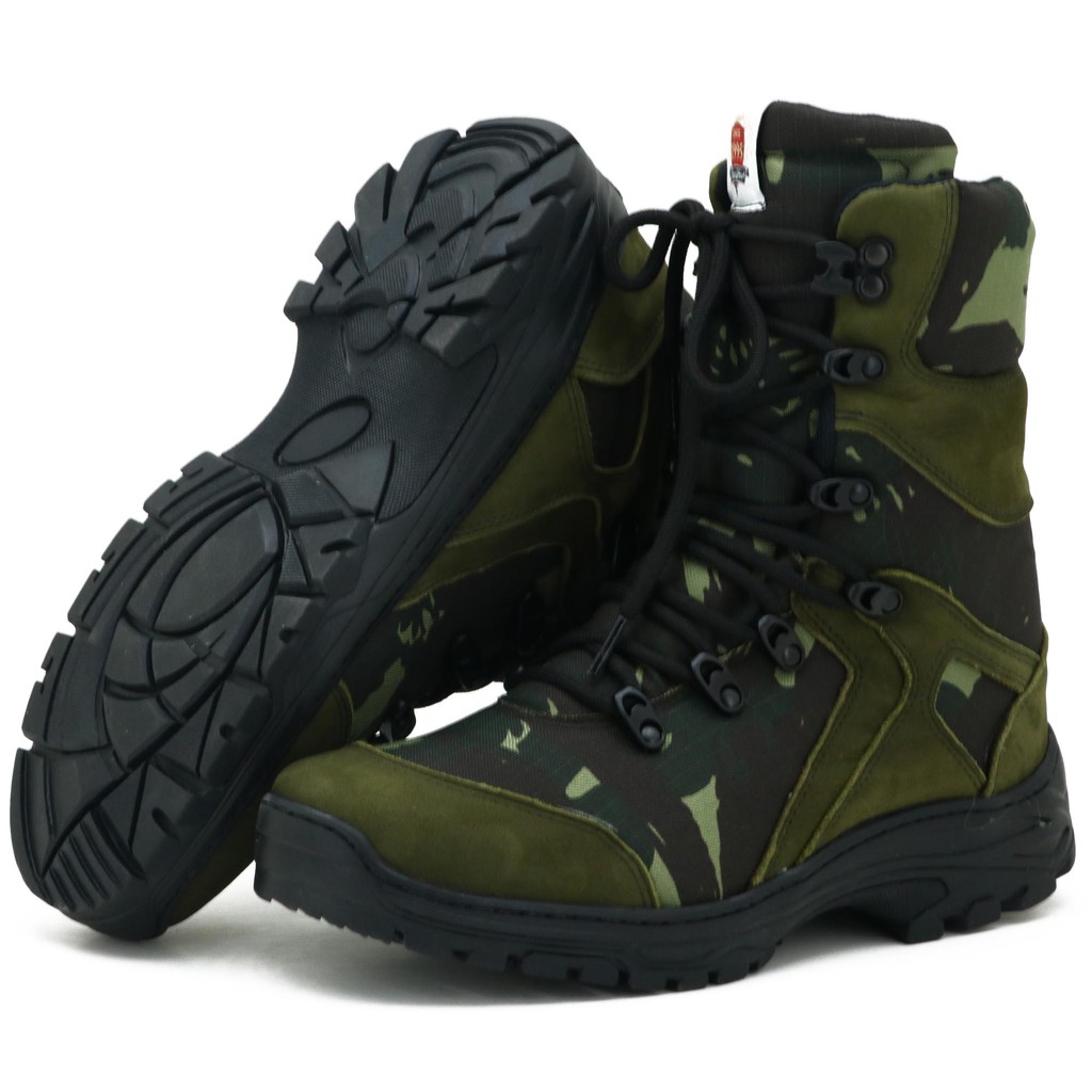 Bota Coturno Militar Em Couro e Lona Camuflado na cor verde