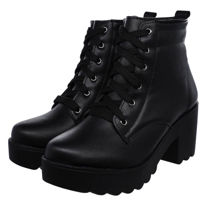Botas Para Mujer De Moto Con Plataforma Y Cordones Botines De