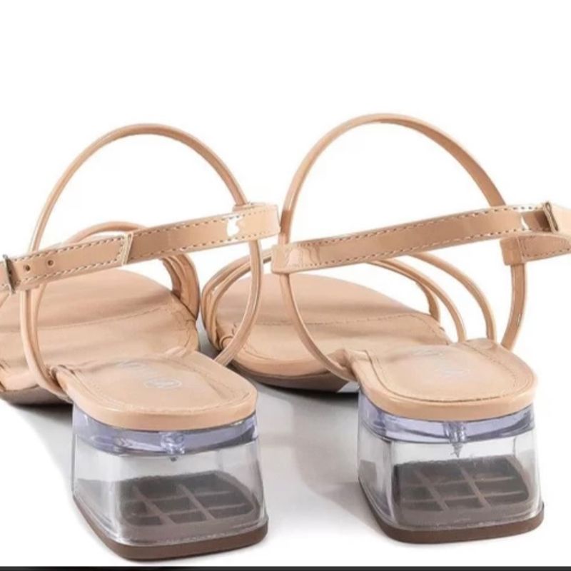 Sandália via uno clearance verniz nude, Sand lia Via Uno Verniz Nude Salto Bloco Acr lico Transparente clearance