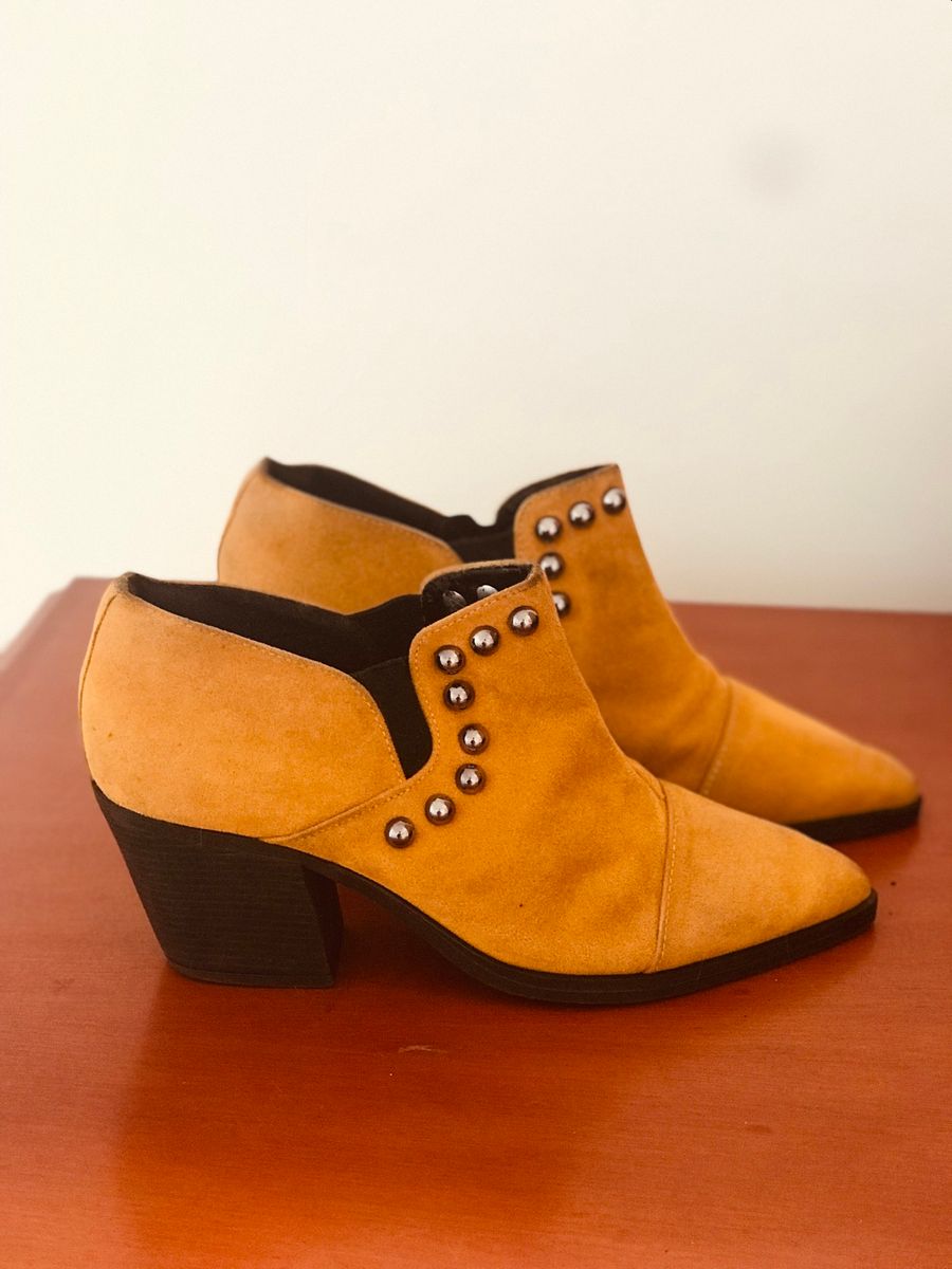 Bota Western Mostarda Camur a Couro Amarelo Salto Bloco Amarela
