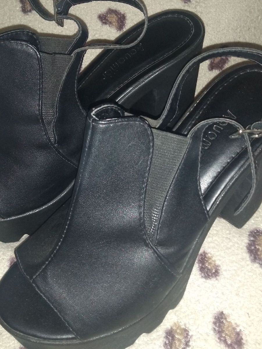 Sand lia Tratorada estilo tamanco Aquamar Preta com salto em madeira 38 brech