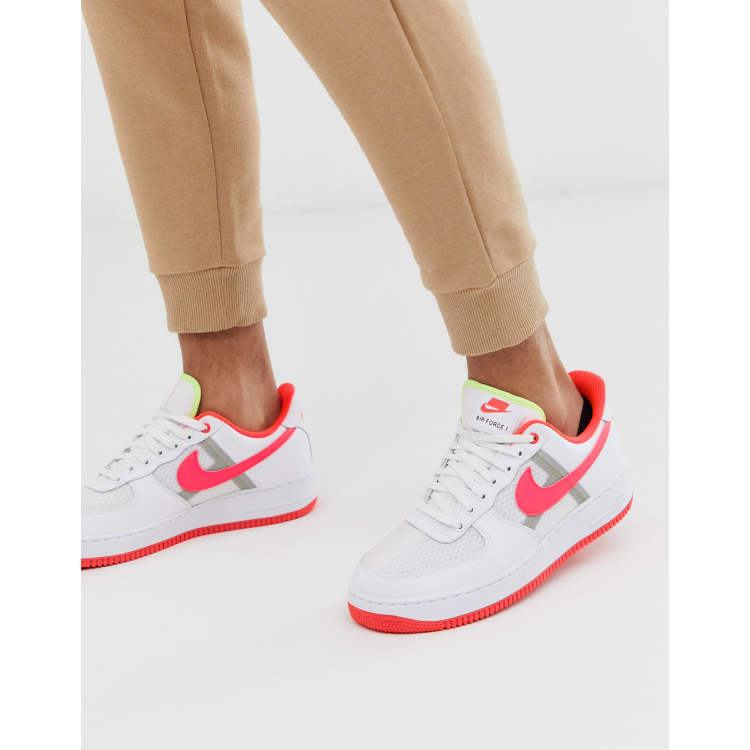 Nike Air Force 1 07 LV8 trainers in white with pink swoosh