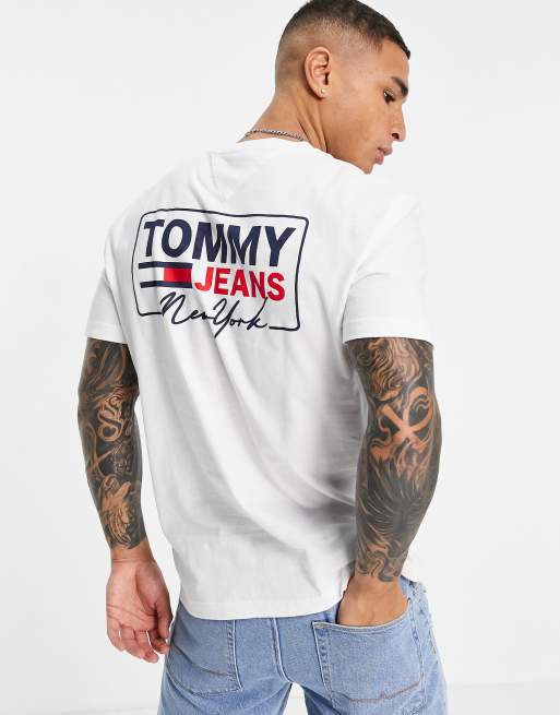 Tommy Jeans linear back logo classic fit t shirt in white ASOS