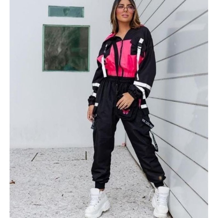 Conjunto Feminino corta vento cal a jaqueta tactel esporte moda
