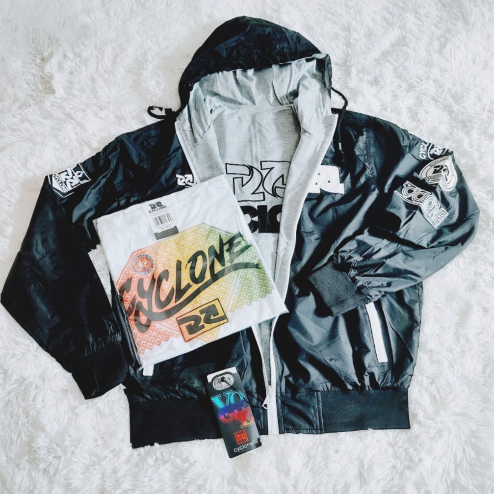 Kit Jaqueta Corta Vento Cyclone Dupla Face Bermuda e camisa Branca ou preta