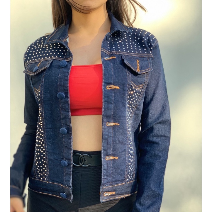 Jaqueta jeans com clearance moletom renner, Jaqueta Jeans Personalizada Com Strass Tamanho P M Shopee Brasil clearance