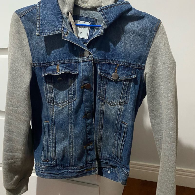 Jaqueta Jeans B sica com Capuz e Manga em Moletom Curta