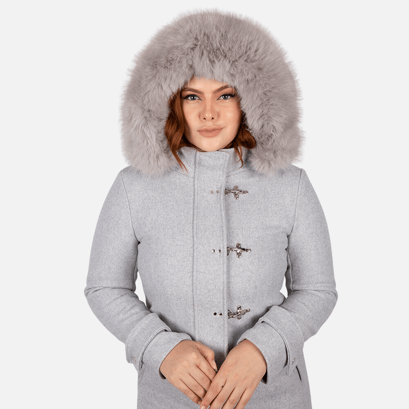 Casaco de inverno europeu para mulheres pele grande com capuz