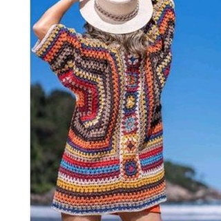 Casaco de croch Color Block Feito com fio SEDIFICADA
