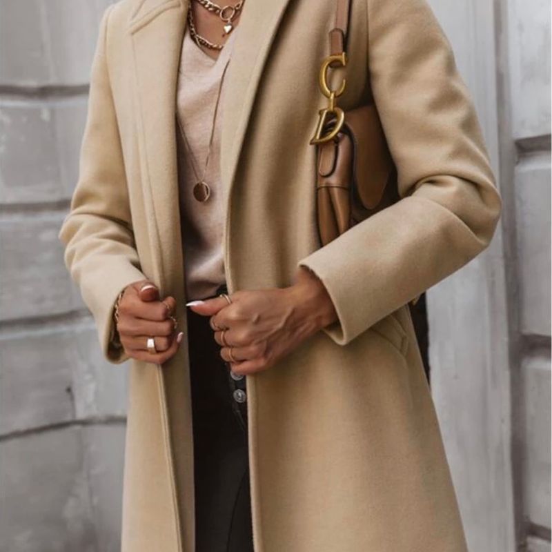 Casaco feminino aberto na frente manga e gola V trespassado cor