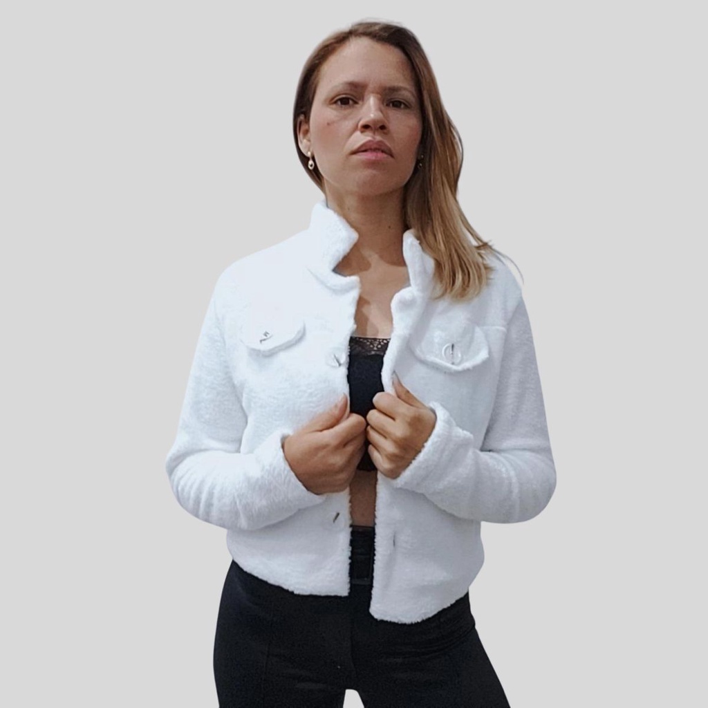 Casaco Soft Feminino Curto Manga Longa Forrada Com Bot o Luxo Moda Outono Inverno