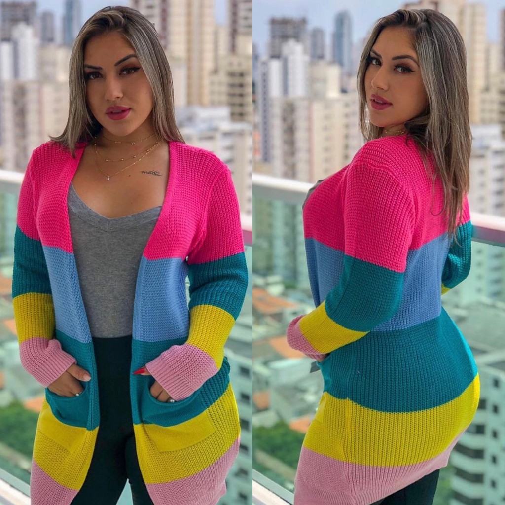 Casaco de trico clearance feminino colorido, maiami at una Roupas de trico Blusas de tric Blus es coloridos clearance