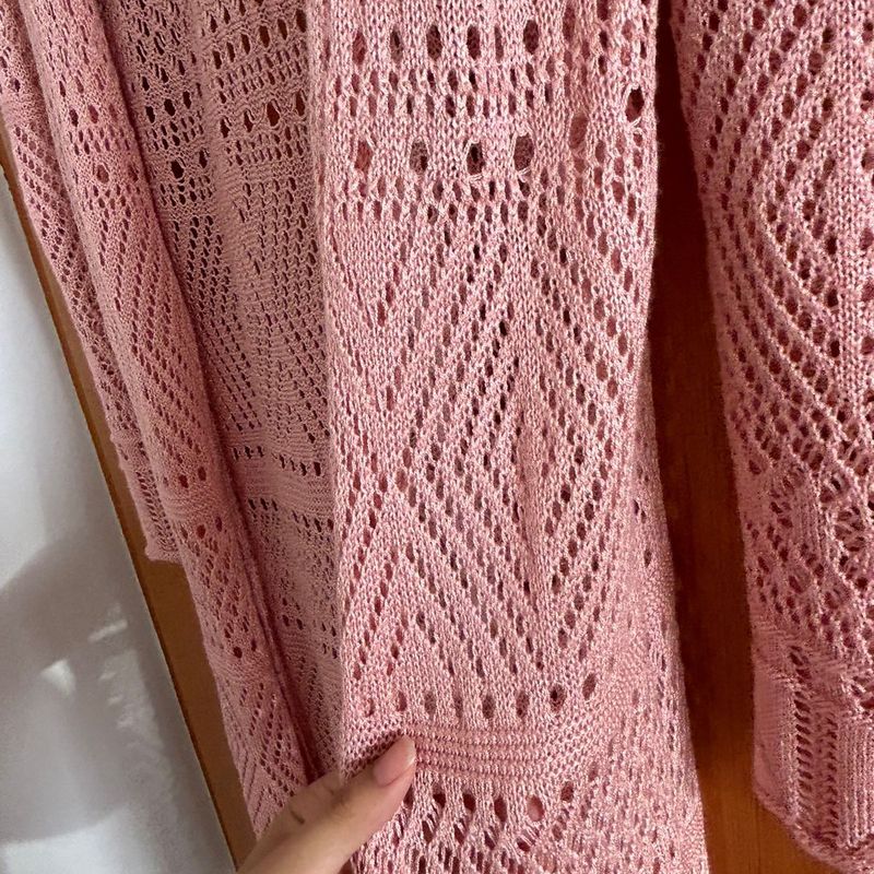 Cardigan feminino longo clearance de croche, Cardigan Longo de Croche Rosa Claro Casaco Feminino Pura Essencia Usado 95161957 enjoei clearance