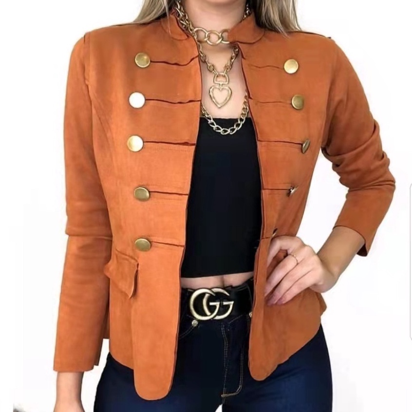 Casaco Feminino Blazer Jaqueta Suede Manga Comprida COM BOTAO