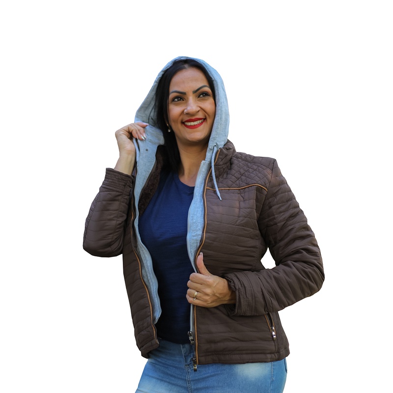 Jaqueta Casaco Feminino Nylon c Capuz Moletom Remov vel Forrada