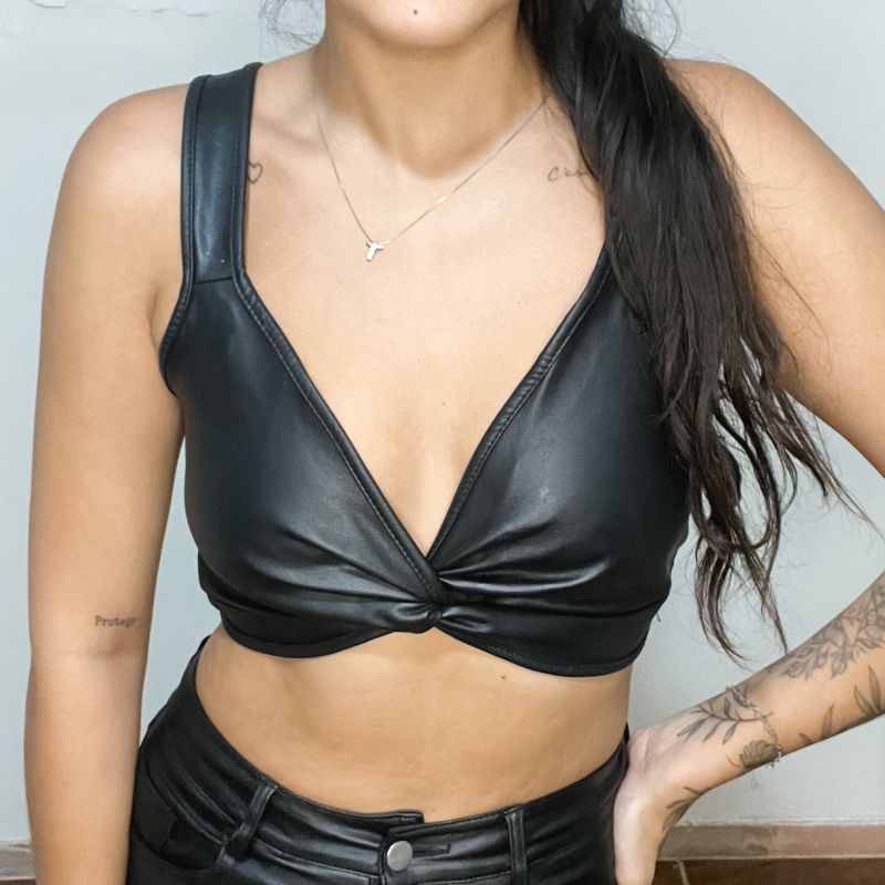 Blusa couro fake clearance feminina, Top Couro Fake Blusa Feminina Rd Lay Usado 84263290 enjoei clearance