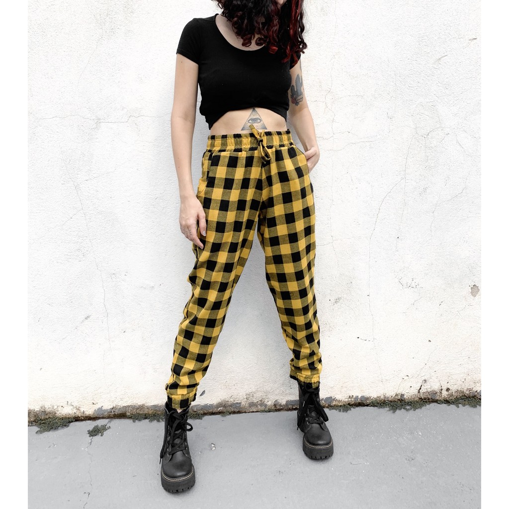 Calça xadrez feminina clearance amarela, Como Usar Cal a Xadrez Acho Tend ncia clearance