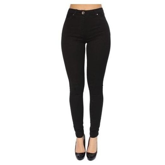 Cal a Feminina Preta Jeans Slim Com Lycra Cintura Alta Poliester