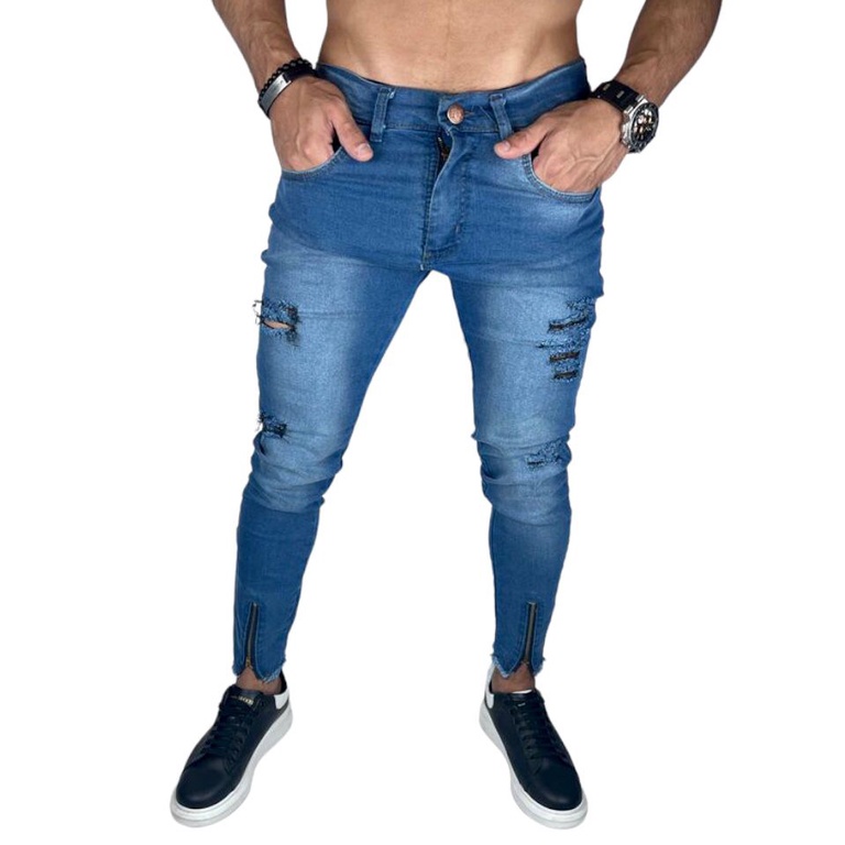 Cal a Jeans masculina com ZIPER NA BARRA Destroyed Pronta Entrega