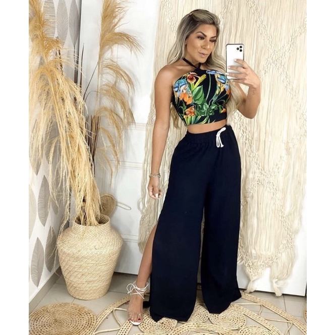 Conjunto Feminino Cal a Pantalona e Cropped Eleg ncia Radiante