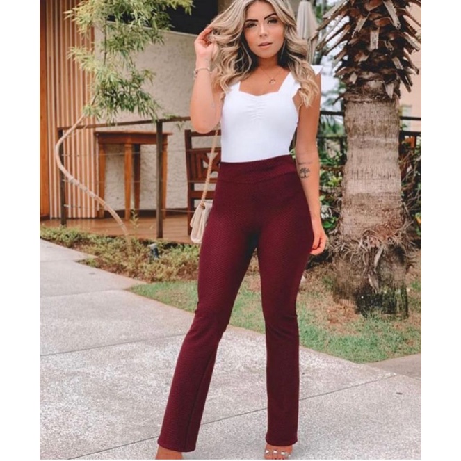 Calcas Femininas Flare Tecido Colmeia com Pre os Incr veis no Shoptime