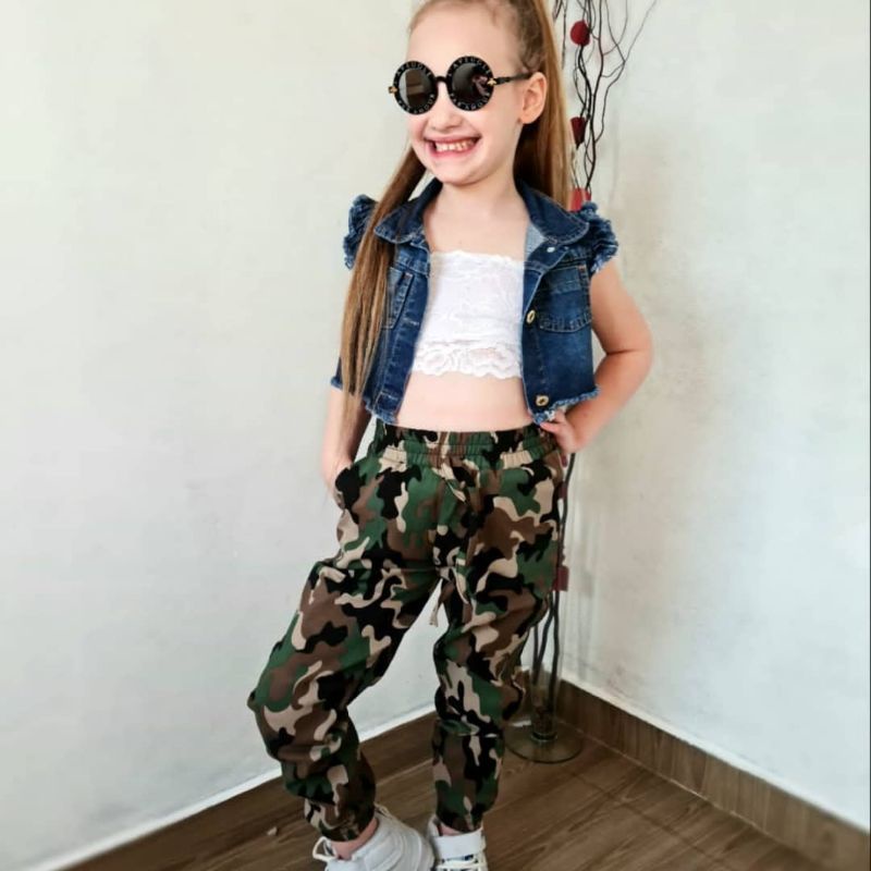 Conjunto infantil Menina Blogueirinha Cal a Camuflada e Croped Mini Diva