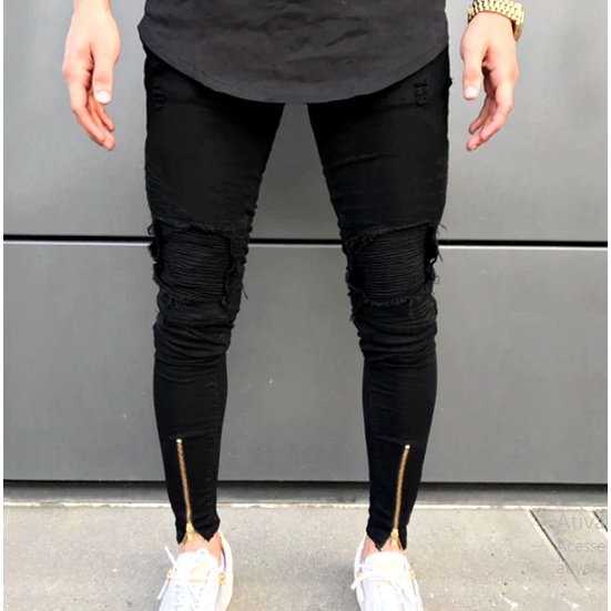 Calca Jeans Skinny Com Laycra Masculina Biker Com Ziper